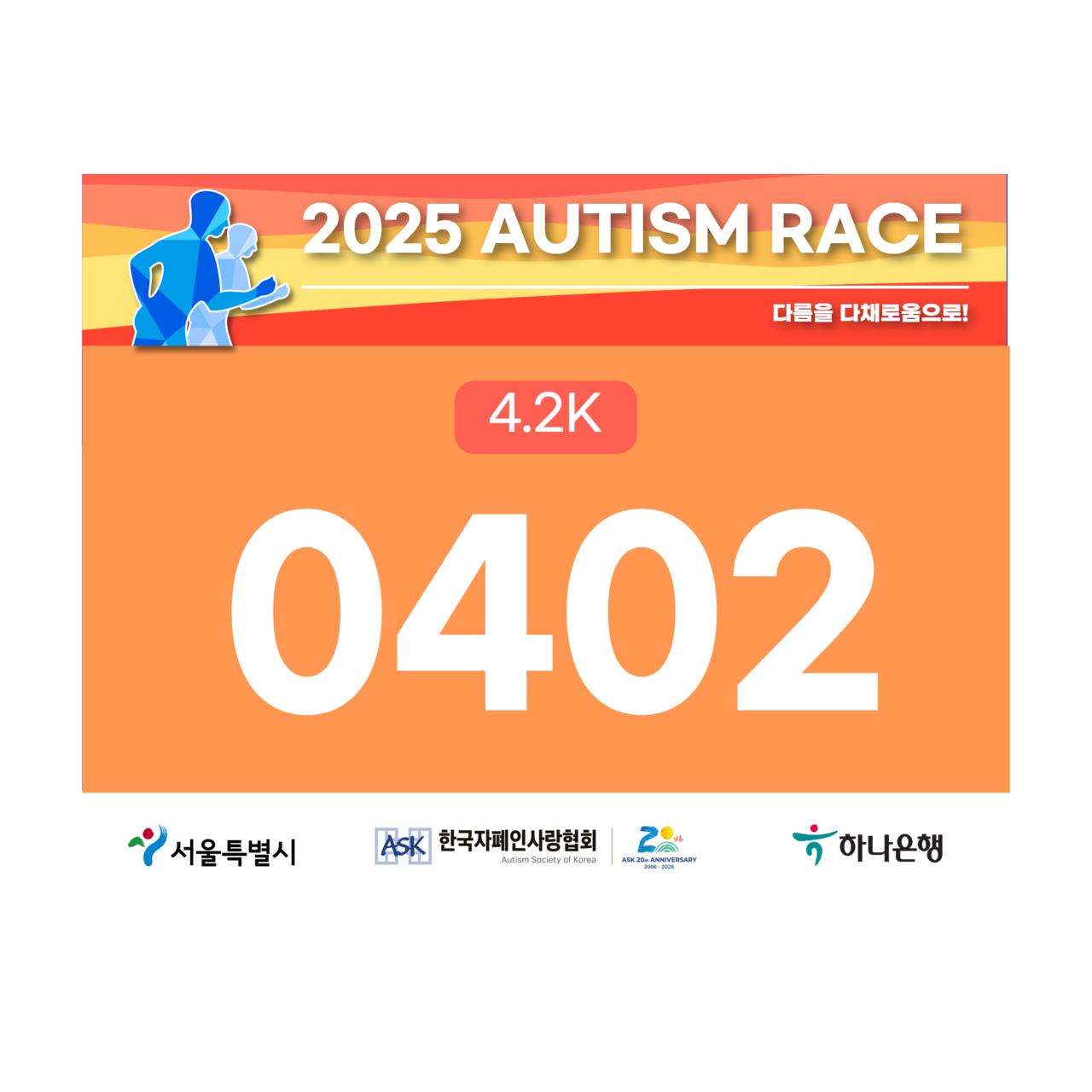 AUTISM RACE 후원 계좌 : 하나은행 188-910015-93904 한국자폐인사랑협회